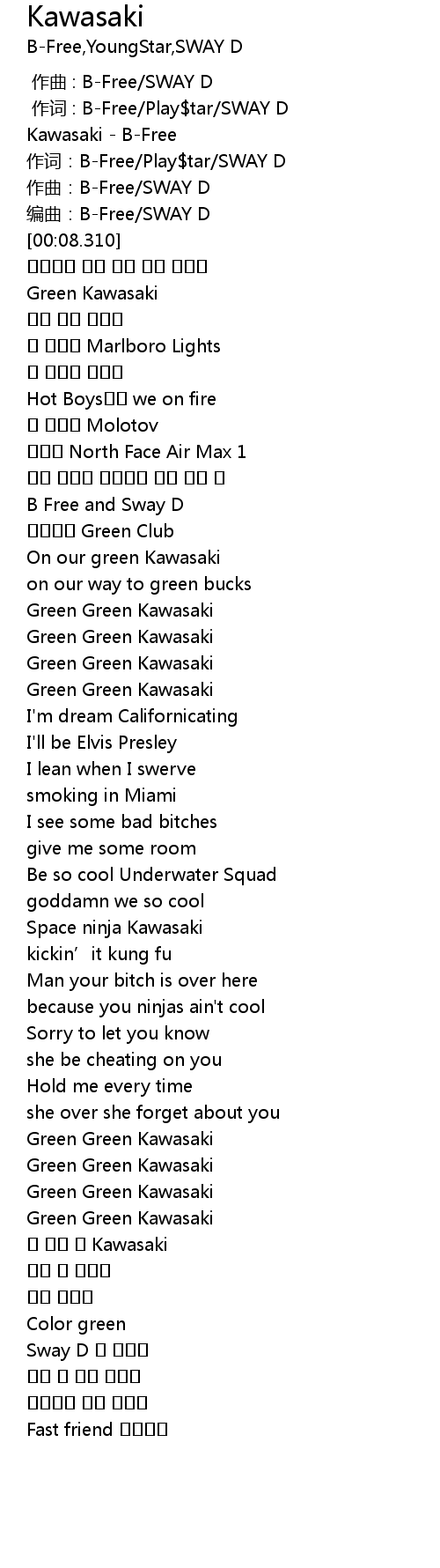 | [00:22.999] | Green Kawasaki |
