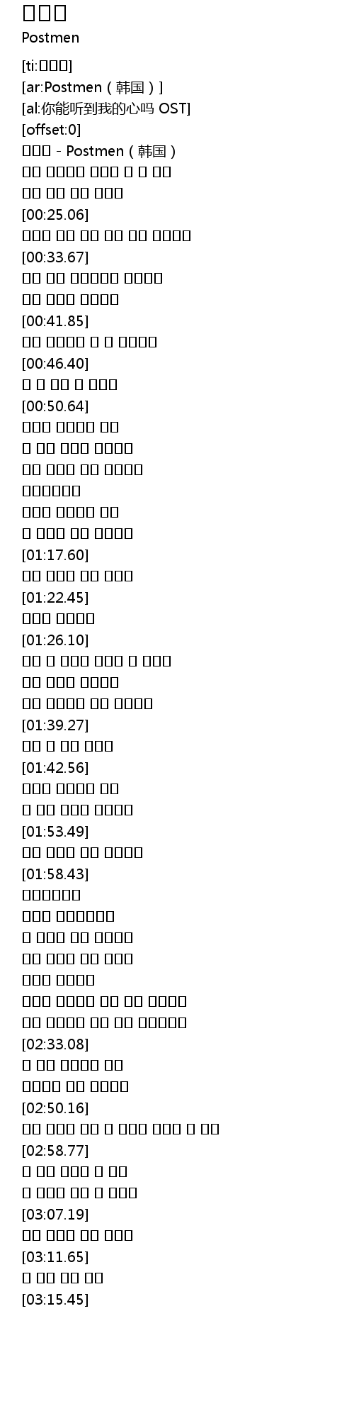 | [00:00.44] | 바보야 - Postmen(韩国) |