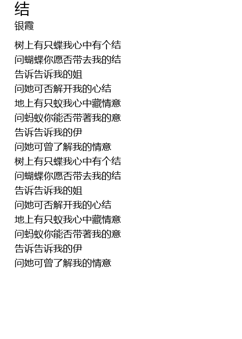 | shù shàng yǒu zhǐ dié wǒ xīn zhōng yǒu gè jié | |