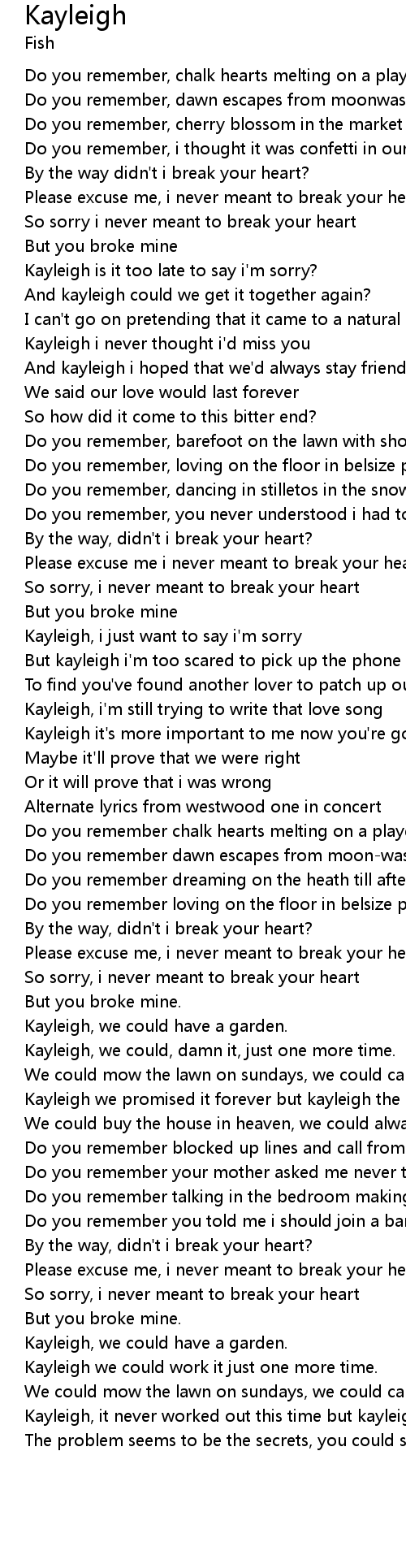 Kayleigh we promised it forever but kayleigh the secrets held on. |