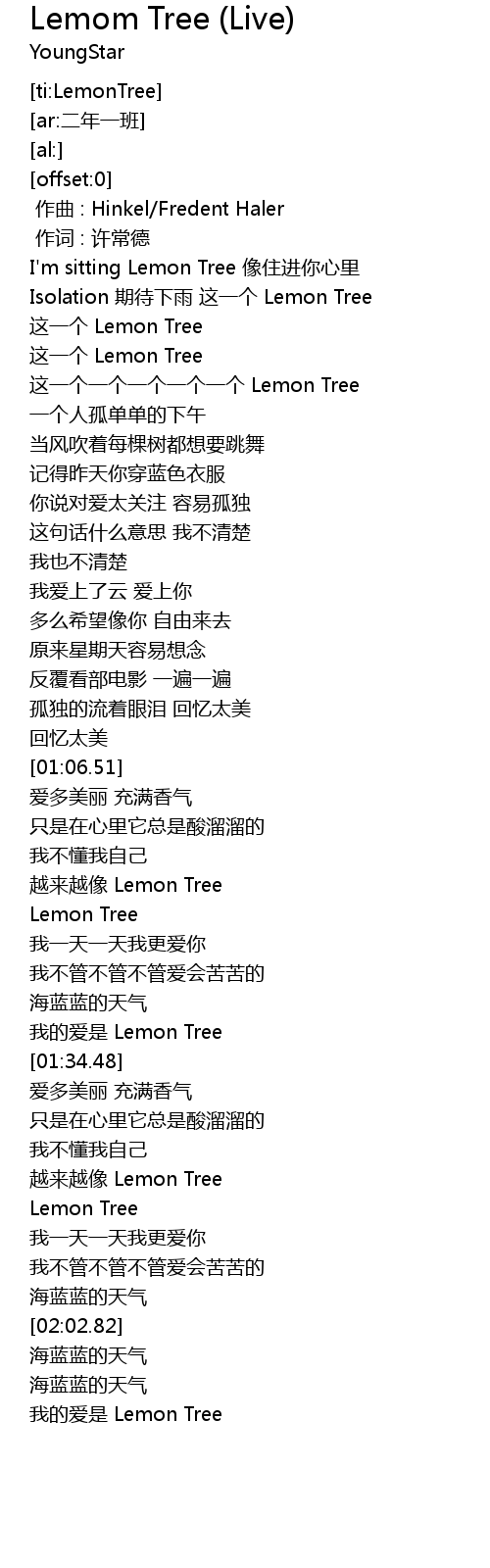 | [01:15.99] | yuè lái yuè xiàng Lemon Tree |
