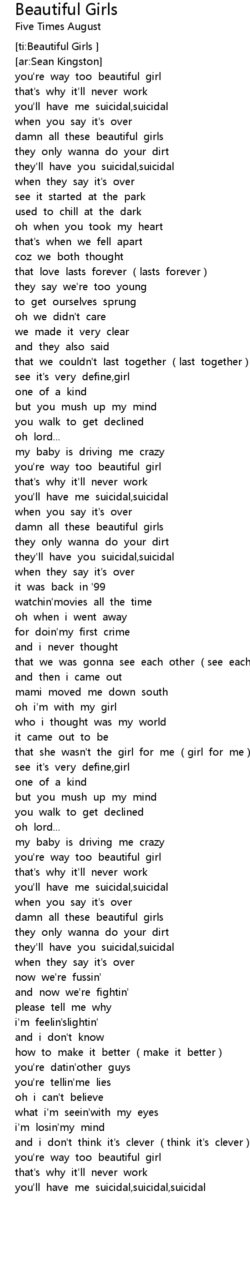 | [01:24.56] | you'll have me suicidal,suicidal |