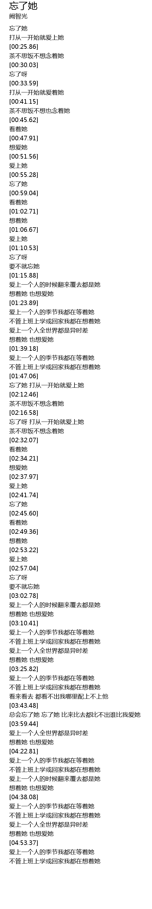 | [02:02.82] | 忘了她 打从一开始就爱上她 |