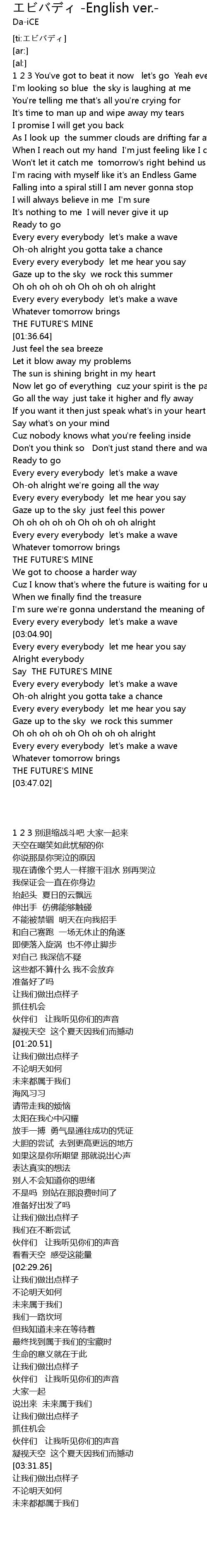 | [00:10.49] | 1 2 3 You've got to beat it now let's go Yeah everybody |