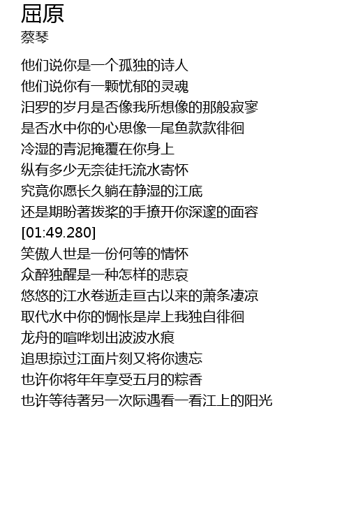 | [00:41.620] | 汨罗的岁月是否像我所想像的那般寂寥 |