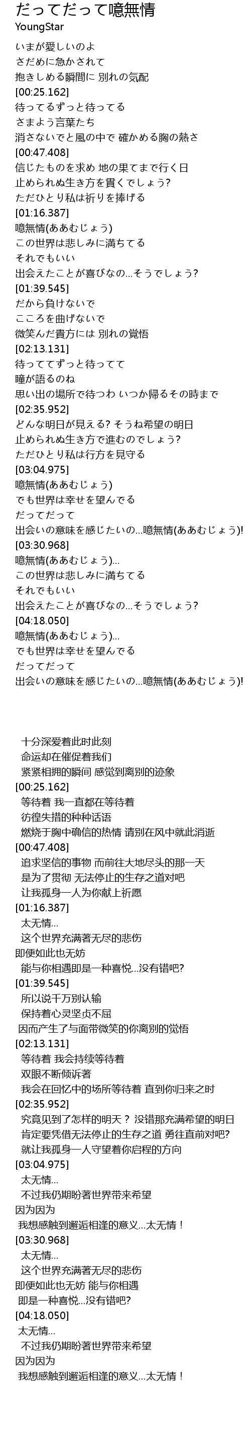 | [03:18.824] | 出会いの意味を感じたいの...噫無情(ああむじょう)! |