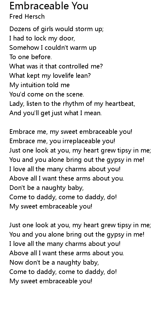 Embrace me, my sweet embraceable you! |