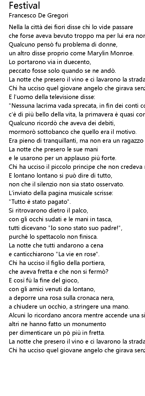 | Artist | Francesco De Gregori |