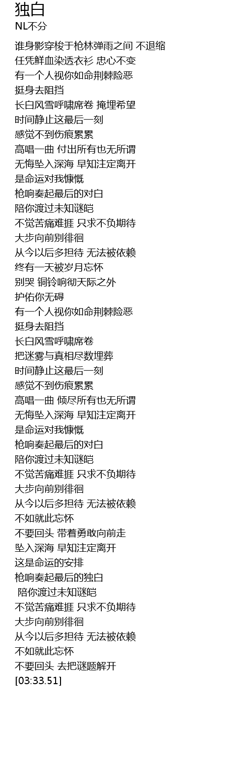| [03:02.47] | 枪响奏起最后的独白 |