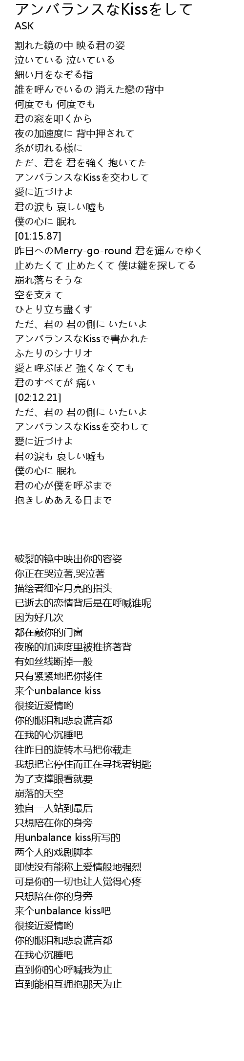 | [02:31.95] | ただ、君の 君の側に いたいよ |