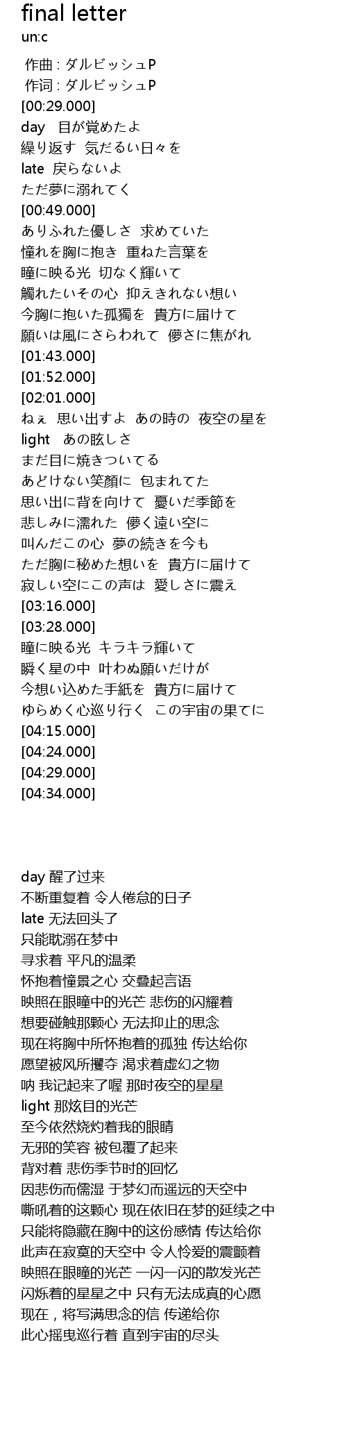 | [03:52.500] | 今想い込めた手紙を 貴方に届けて |