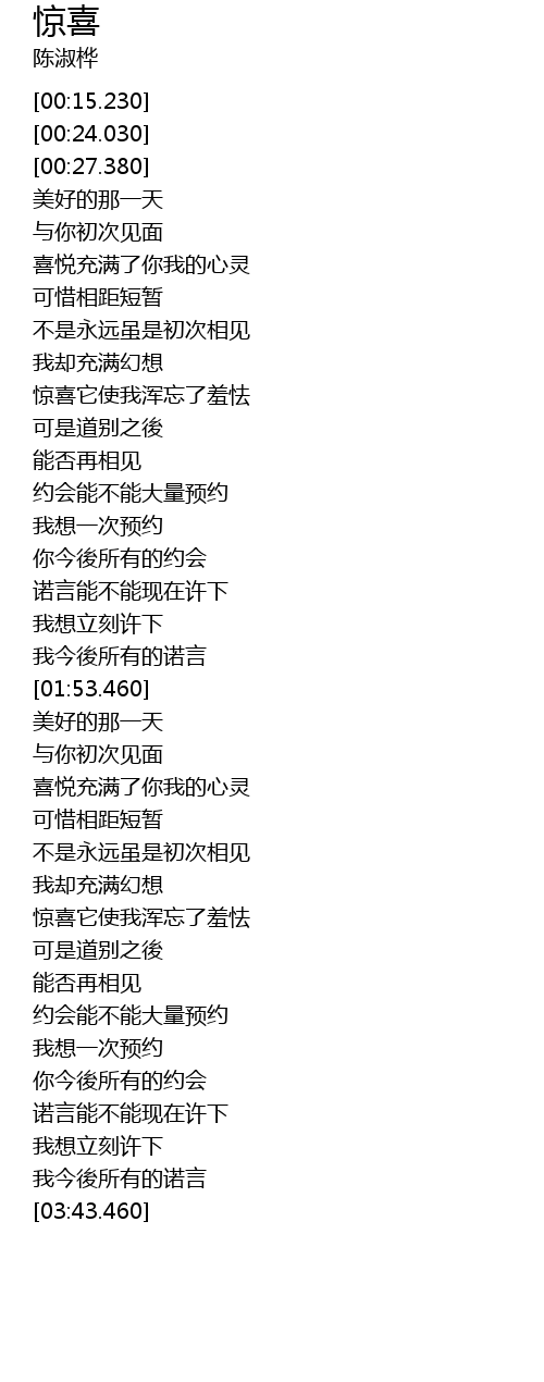 | [02:58.490] | 惊喜它使我浑忘了羞怯 |