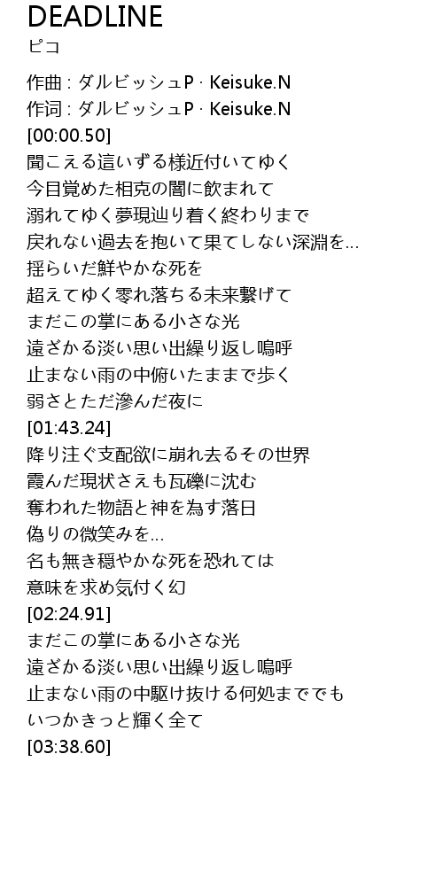 | [00:00.00] | 作曲 : ダルビッシュP · Keisuke.N |