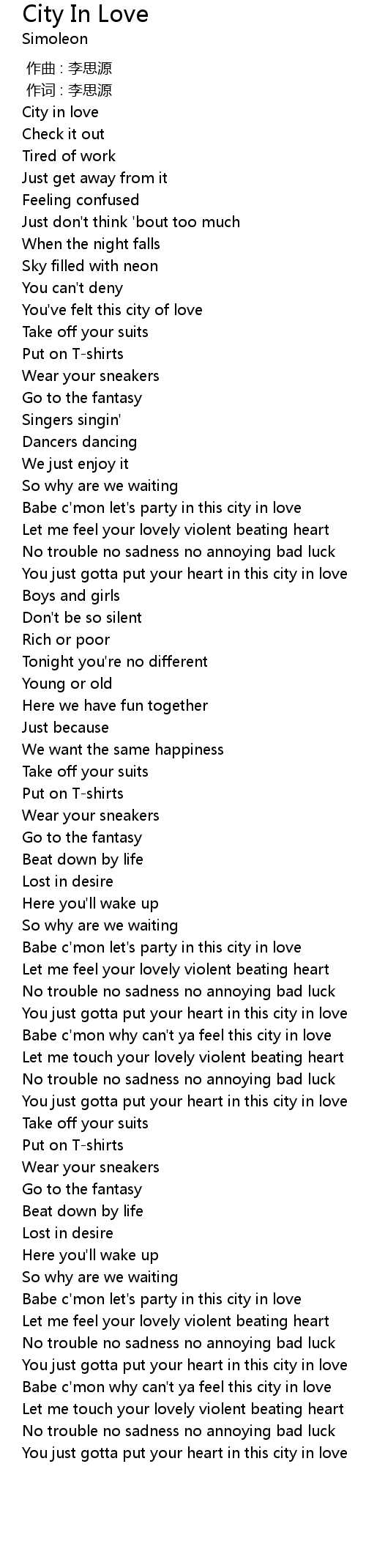 | [03:53.15] | Babe c'mon why can't ya feel this city in love |