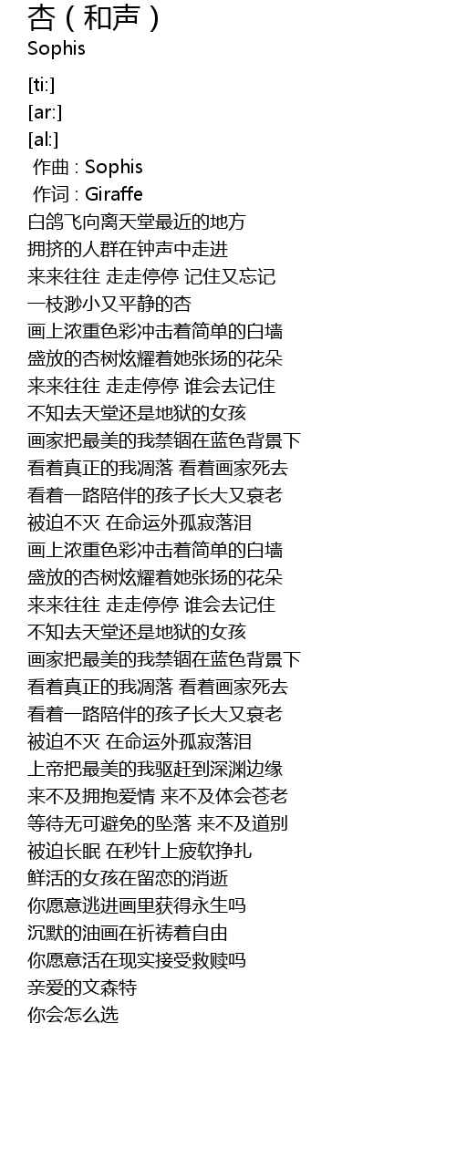 | [03:17.48] | 你愿意逃进画里获得永生吗 |