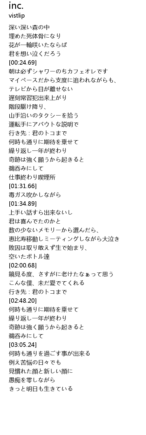 | [01:53.06] | 敗因は取り敢えず生で始まり、 |