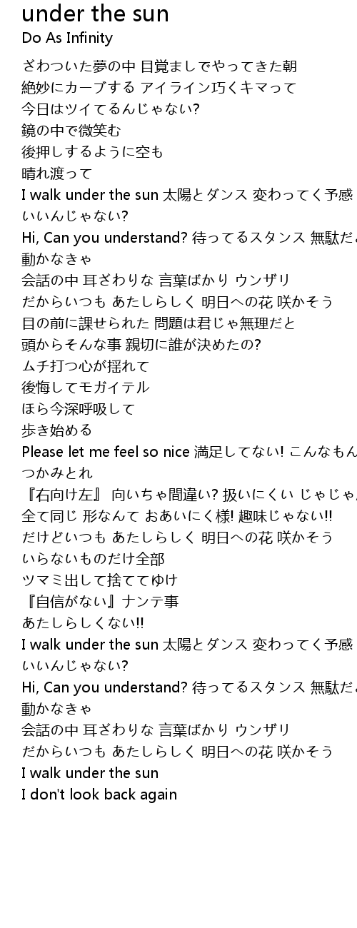 | I walk under the sun tài yáng biàn yǔ gǎn ? | |