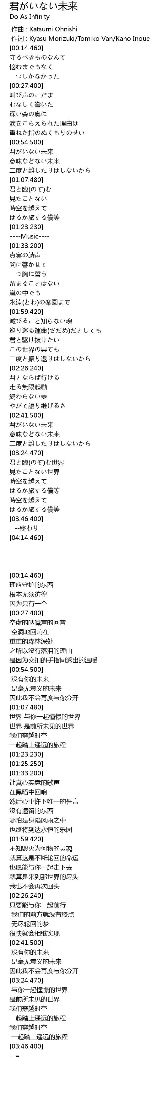 | [00:01.00] | zuò cí : Kyasu Morizuki Tomiko Van Kano Inoue |