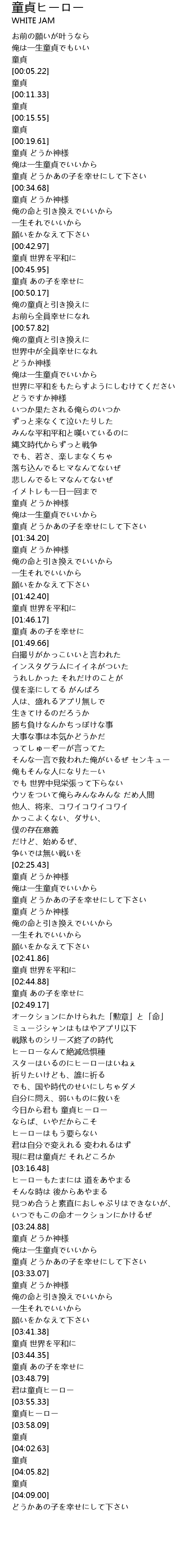 | [00:43.51] | 童貞 世界を平和に |