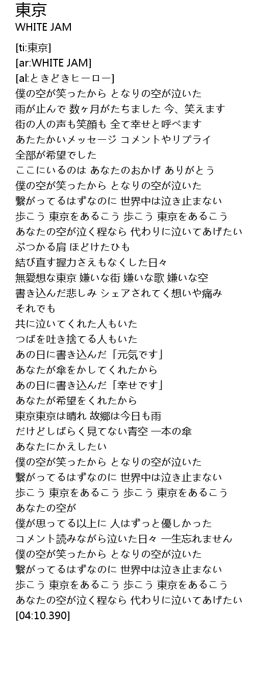 | [03:45.240] | 歩こう 東京をあるこう 歩こう 東京をあるこう |