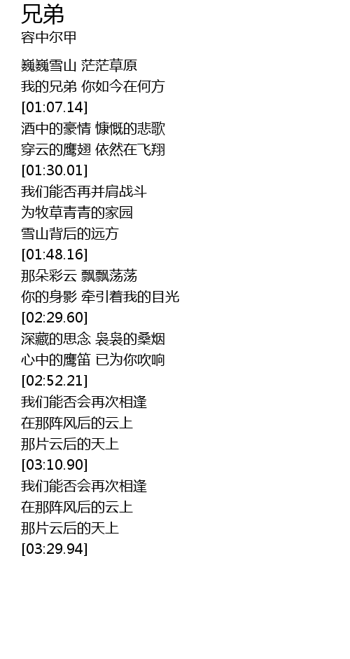| [00:57.78] | 我的兄弟 你如今在何方 |