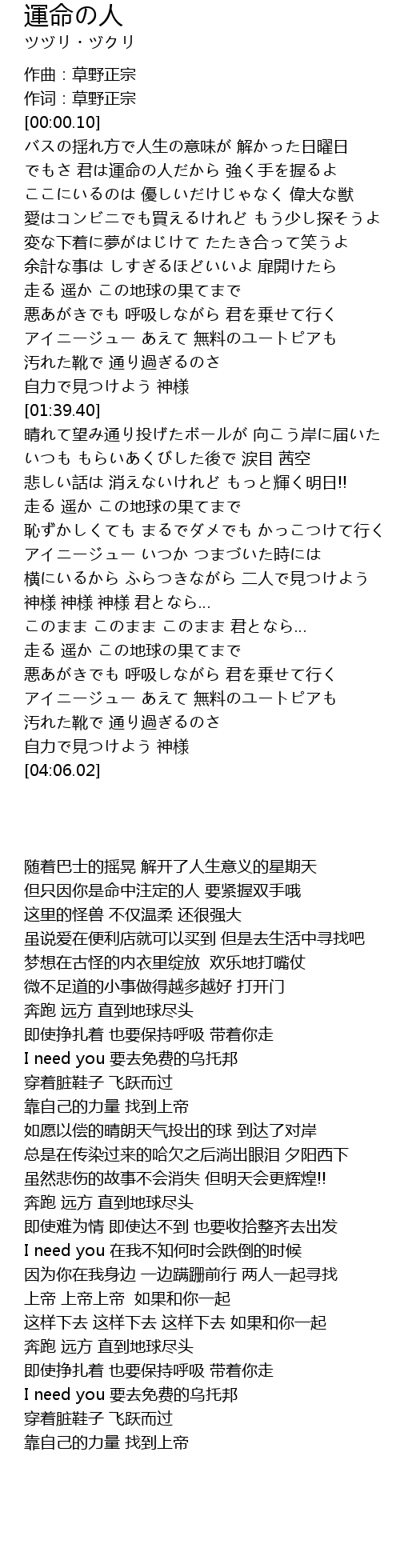 | [00:00.00] | 作曲:草野正宗 |