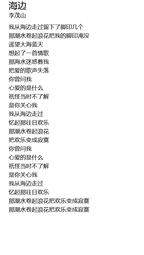 | wǒ cóng hǎi biān zǒu guò liú xià le jiǎo yìn jǐ gè | |