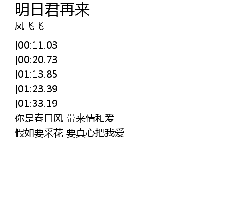 | [02:11.60][01:23.39][00:40.08] | 如果要了解 明日君再来 |