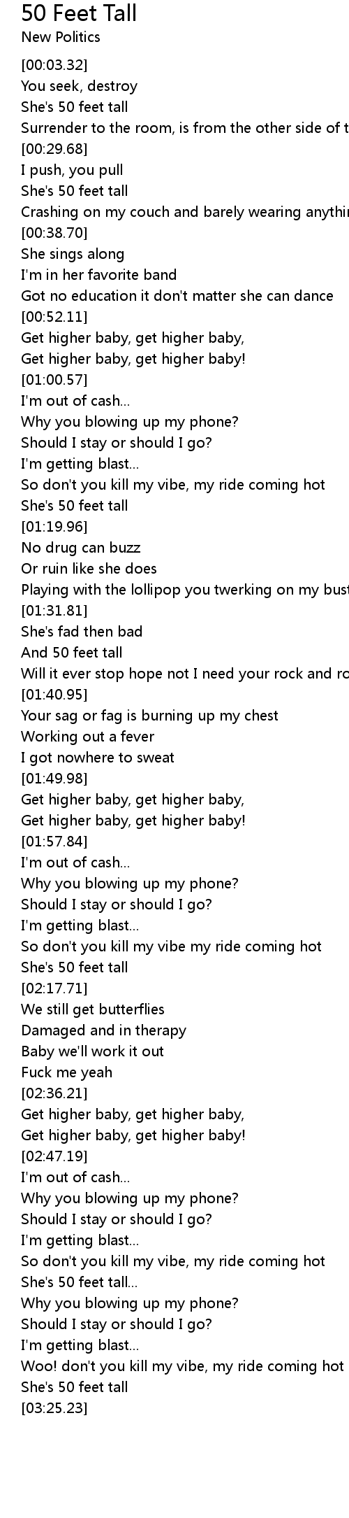 Get higher baby, get higher baby, |