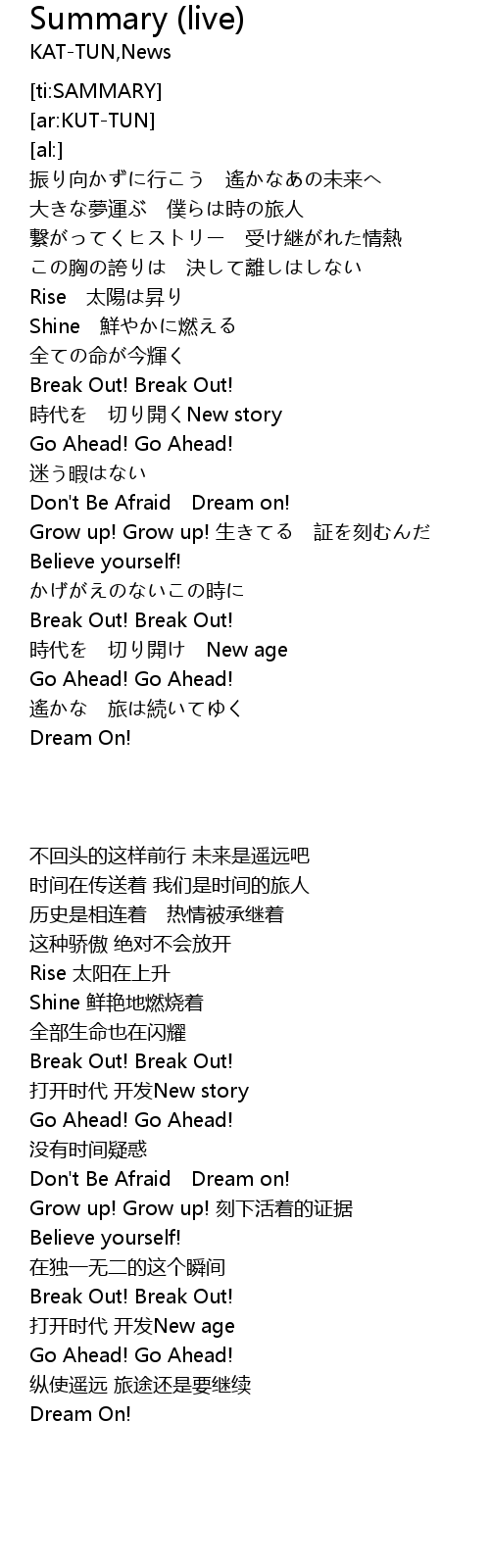 | [02:14.08] | Don't Be Afraid Dream on! |