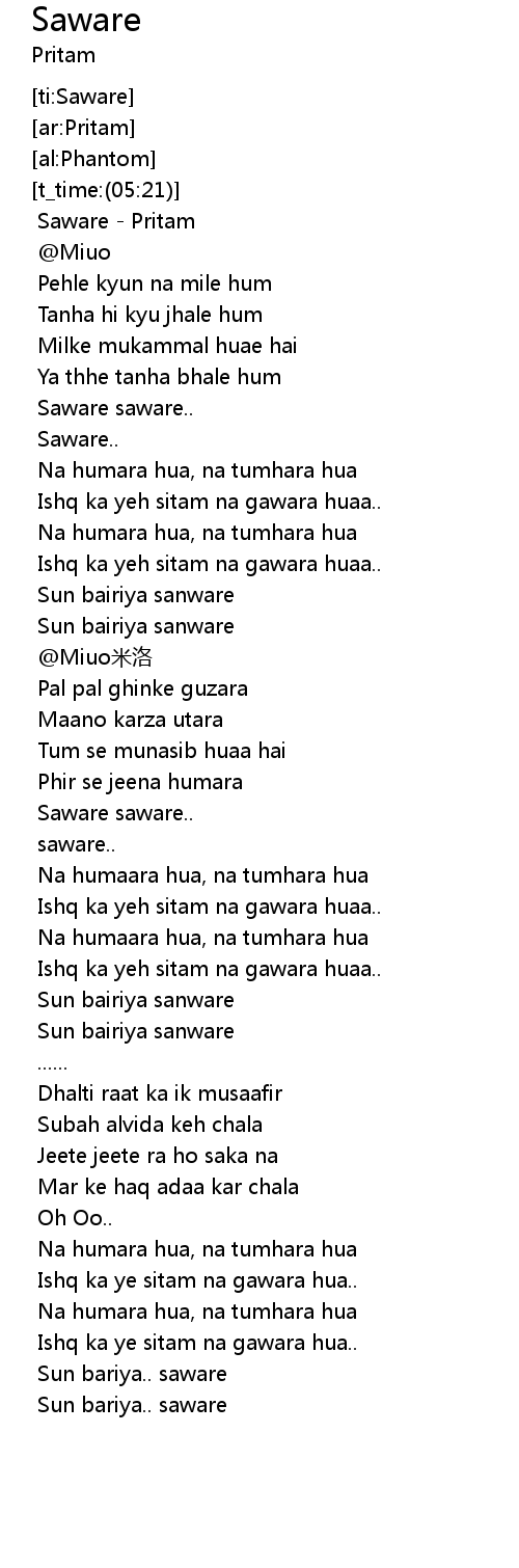 | [04:43.42] | Na humara hua, na tumhara hua |
