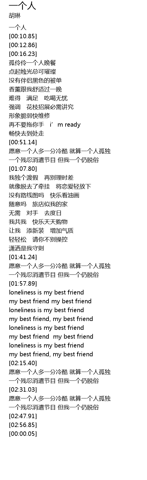 | [02:03.56] | loneliness is my best friend |