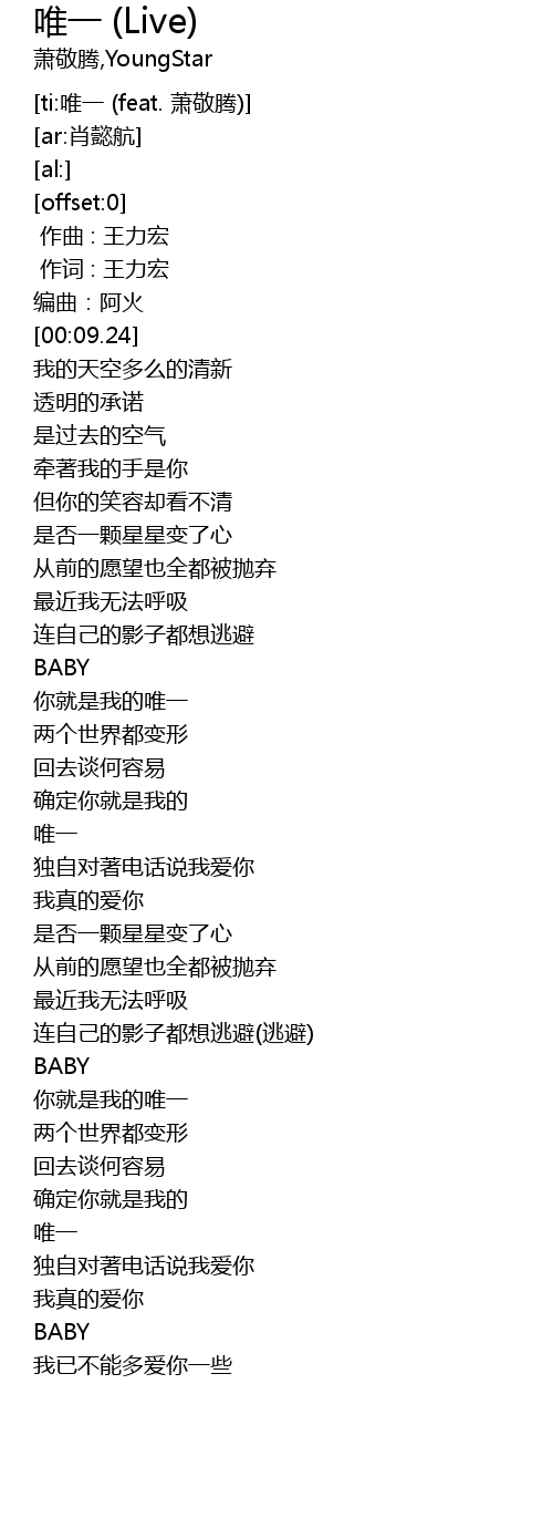 | [ti:唯一 (feat. 萧敬腾)] | |