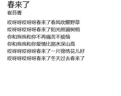 | āi yā ya āi yā ya chūn lái le chūn fēng chuī xǐng yě cǎo | |