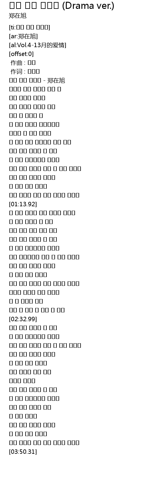 | [00:01.35] | 이젠 나를 붙잡아 - 郑在旭 |