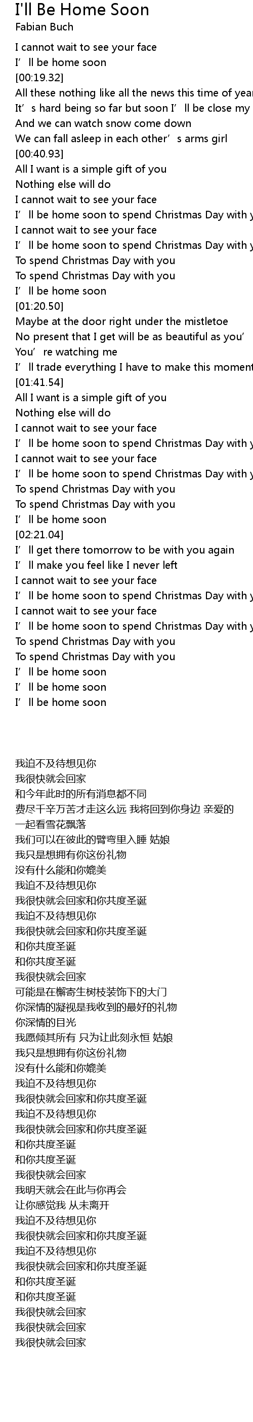 | [00:56.51] | I' ll be home soon to spend Christmas Day with you |