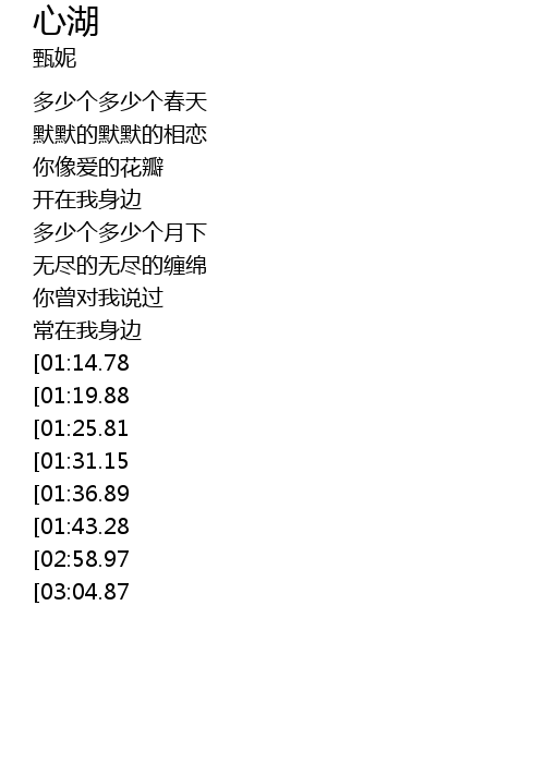 | [02:29.15][01:14.78] | 一池静静湖水 |