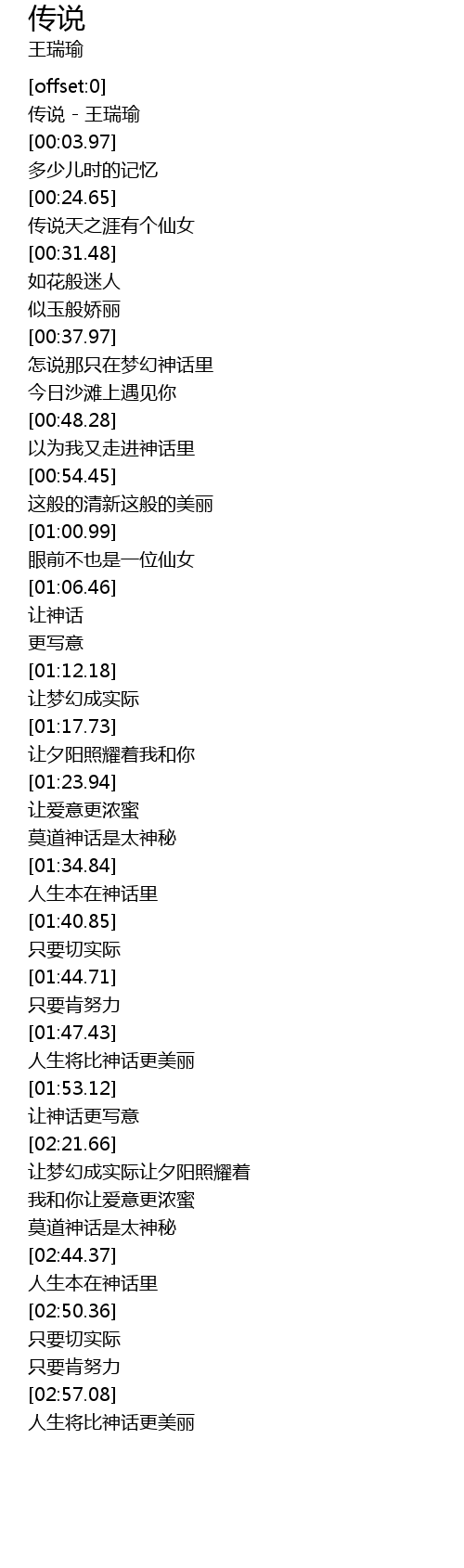 | [00:00.15] | 传说 - 王瑞瑜 |