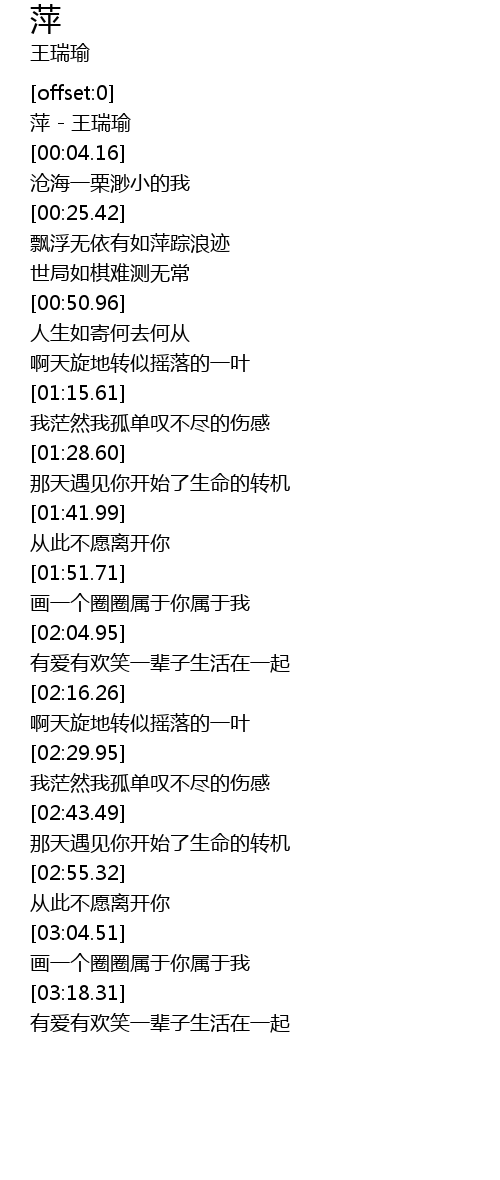 [00:00.18] 萍 - 王瑞瑜