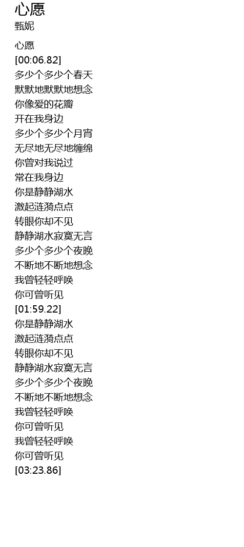 | [00:25.82] | duō shǎo gè duō shǎo gè chūn tiān |