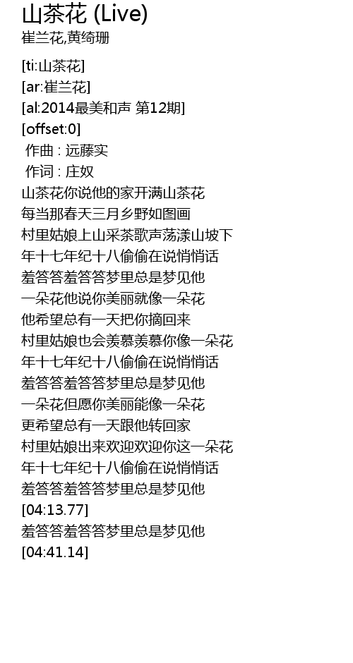 | [00:23.45] | 山茶花你说他的家开满山茶花 |