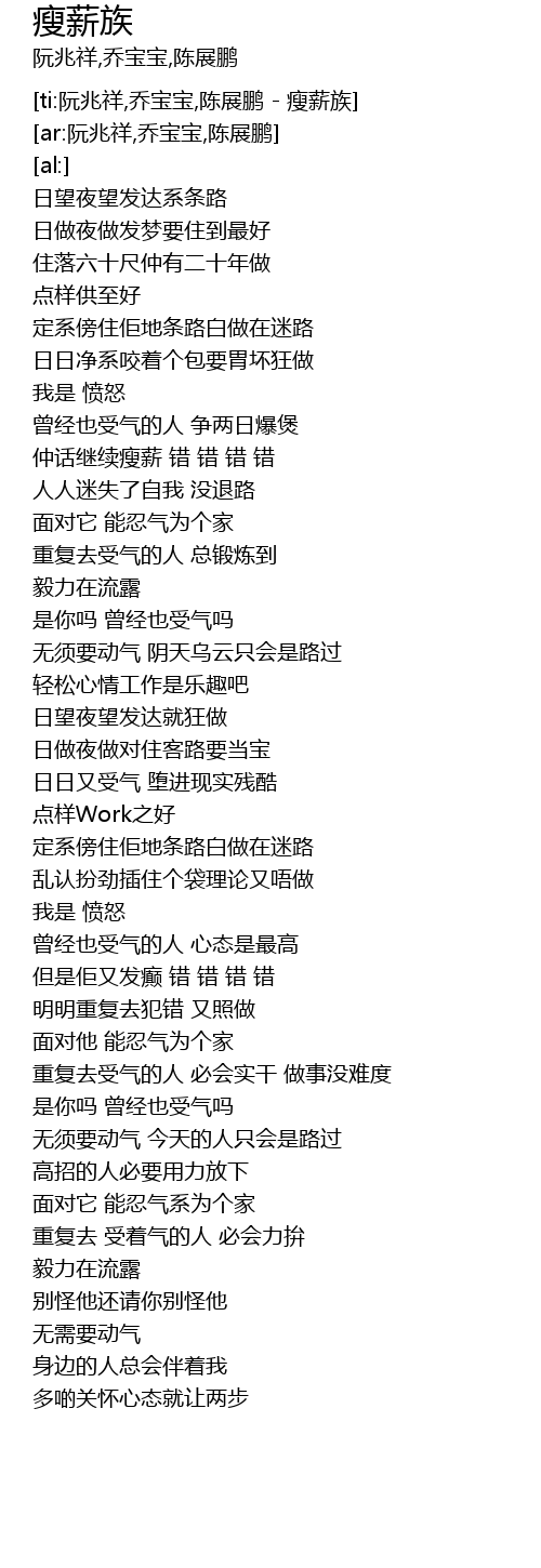 | [ti:阮兆祥,乔宝宝,陈展鹏 - 瘦薪族] | |