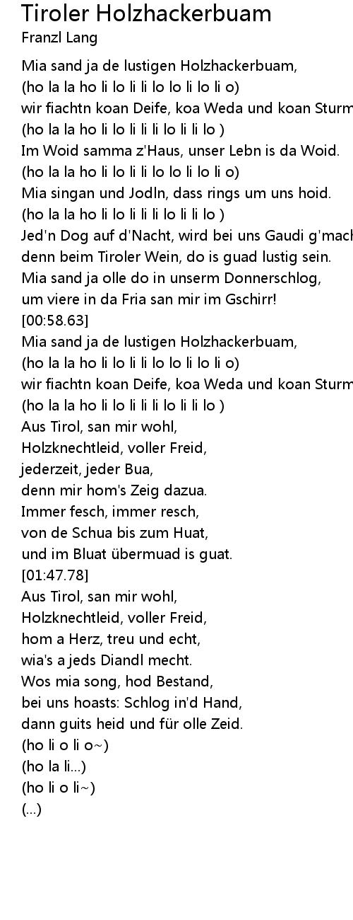 | [00:04.39] | Mia sand ja de lustigen Holzhackerbuam, |