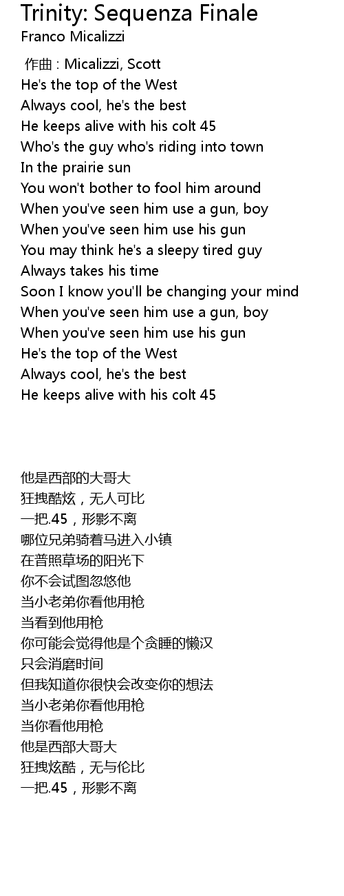 | [01:37.00] | He keeps alive with his colt 45 |