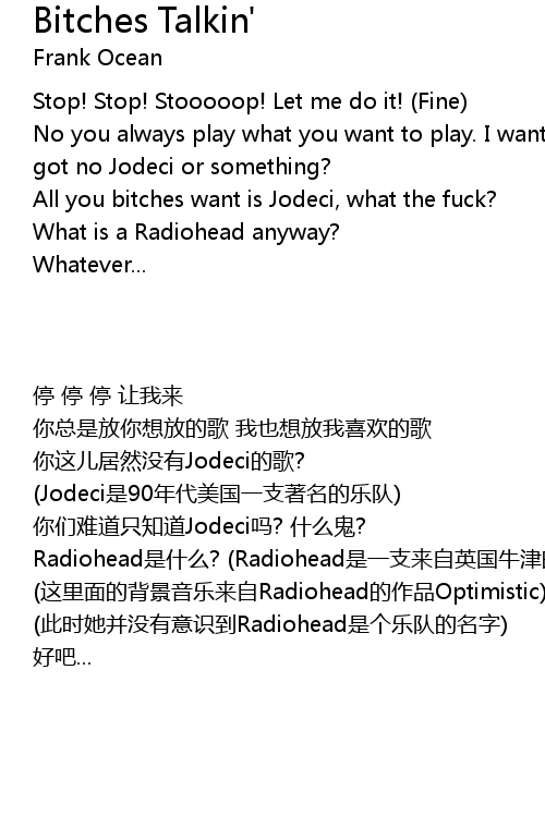 | [00:11.67] | All you bitches want is Jodeci, what the fuck? |