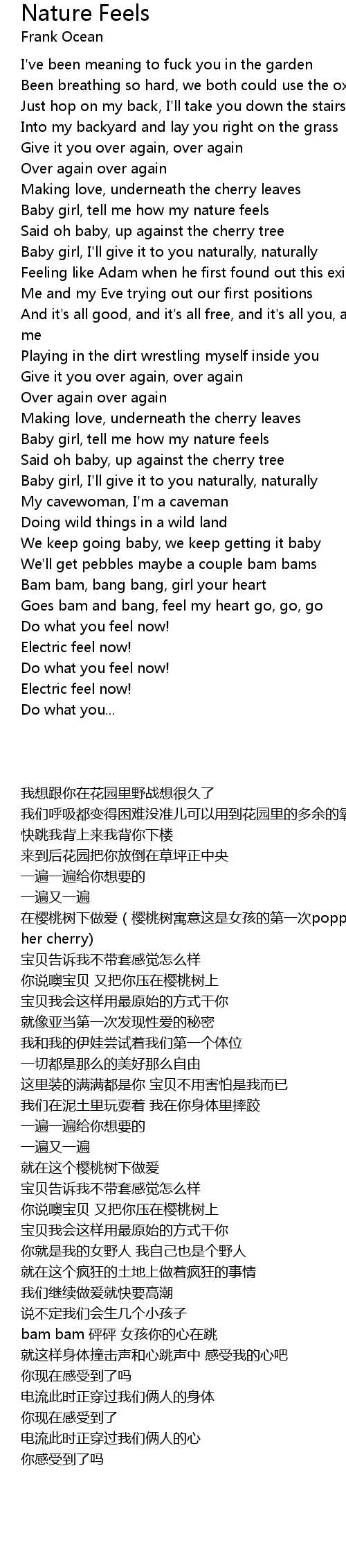 Baby girl, tell me how my nature feels |