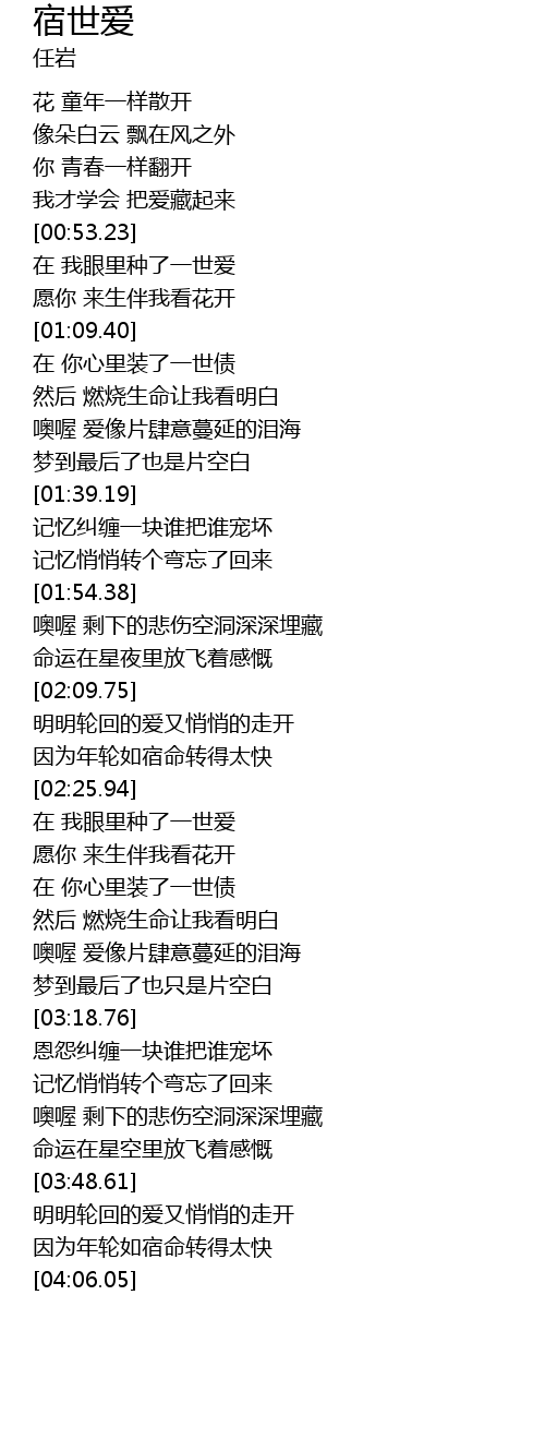 | [00:55.35] | 在 我眼里种了一世爱 |