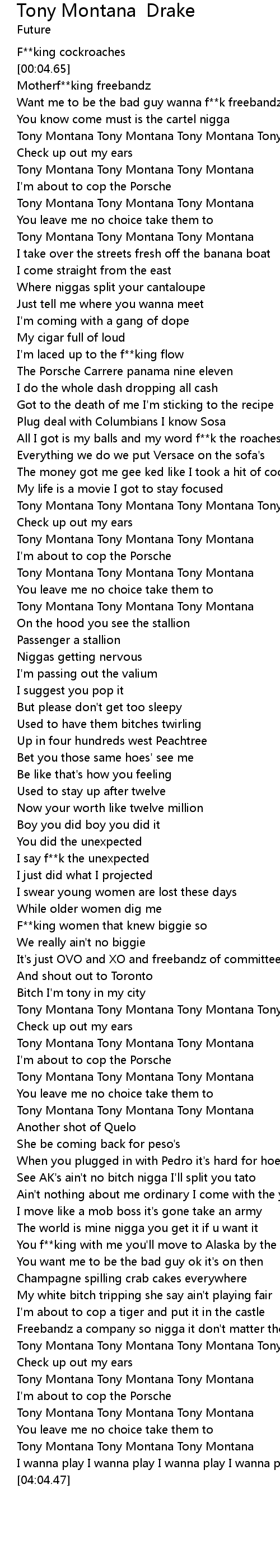 | [03:58.16] | Tony Montana Tony Montana Tony Montana |