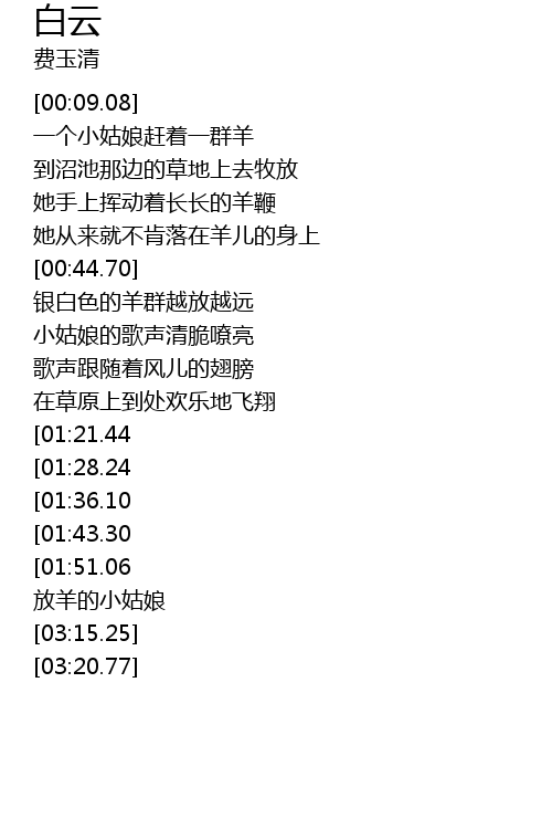 | [02:58.27][01:51.06] | 白云上正走动着放羊的小姑娘 |