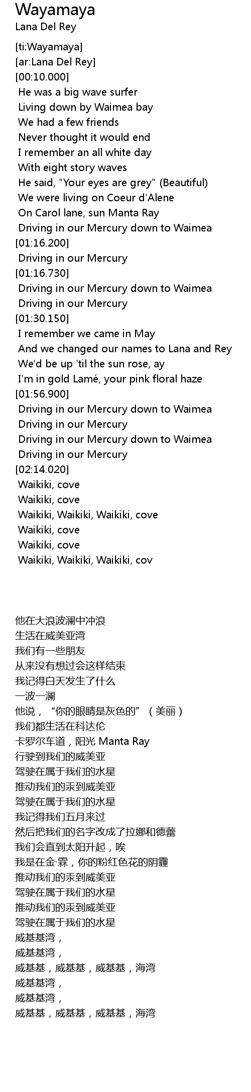 | [02:18.980] | Waikiki, Waikiki, Waikiki, cove |